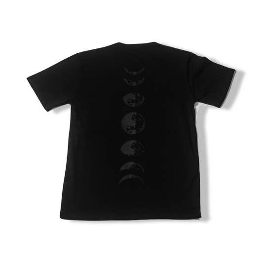 Moonlit Mystery: Black-on-Black T-shirt with Discreet Lunar Cycle